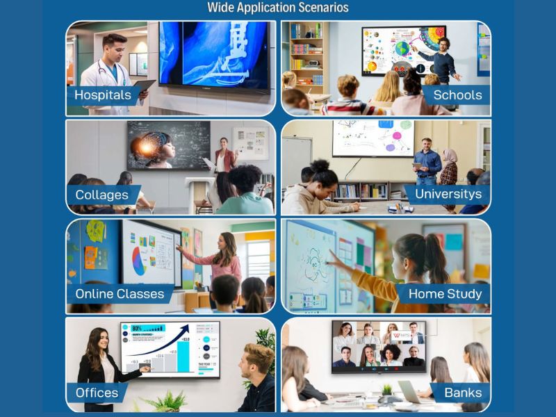 An interactive digital display board is an advanced flat-panel display system, usually based on LED, LCD, or touch-enabled smart screen technology, that combines visual display with touch interactivity, connectivity, and multimedia integration. It functions as both a teaching/learning tool and a collaborative communication platform, making it popular in classrooms, corporate offices, training centers, and public spaces.