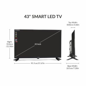 · Display: 43 inch (109 cm), LED panel, Full HD (1920×1080), 60 Hz refresh rate, bezel-less design, ~1.07 million colors, dynamic contrast & backlight, anti-aliasing features