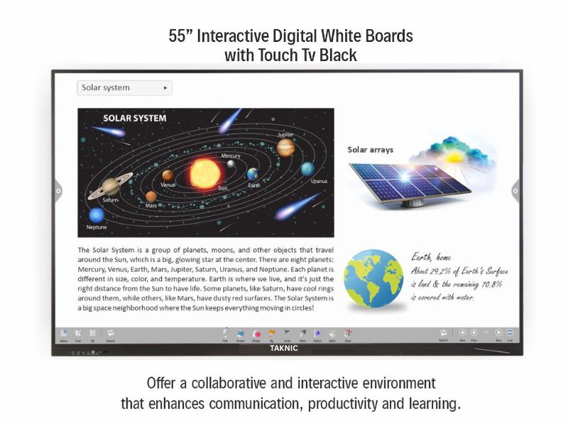 An interactive digital display learning board is a modern teaching tool that combines a touchscreen display with digital learning features. It allows teachers and students to write, draw, present, and interact with content in real time using touch or digital pens. These boards support multimedia integration (videos, images, animations), internet connectivity, and interactive apps, making lessons more engaging and collaborative. They replace traditional blackboards/whiteboards with smart technology, enhancing classroom participation, remote learning, and overall teaching efficiency.